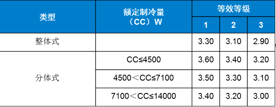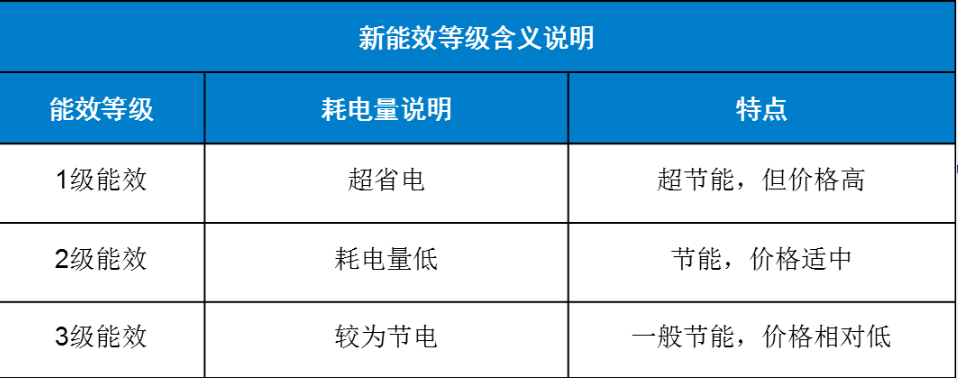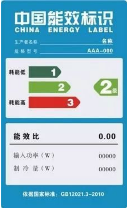 《GB 12021.3-2010 房间空调调节器能效限定值及能效等级》新标准,中国能效标识划分3个等级: